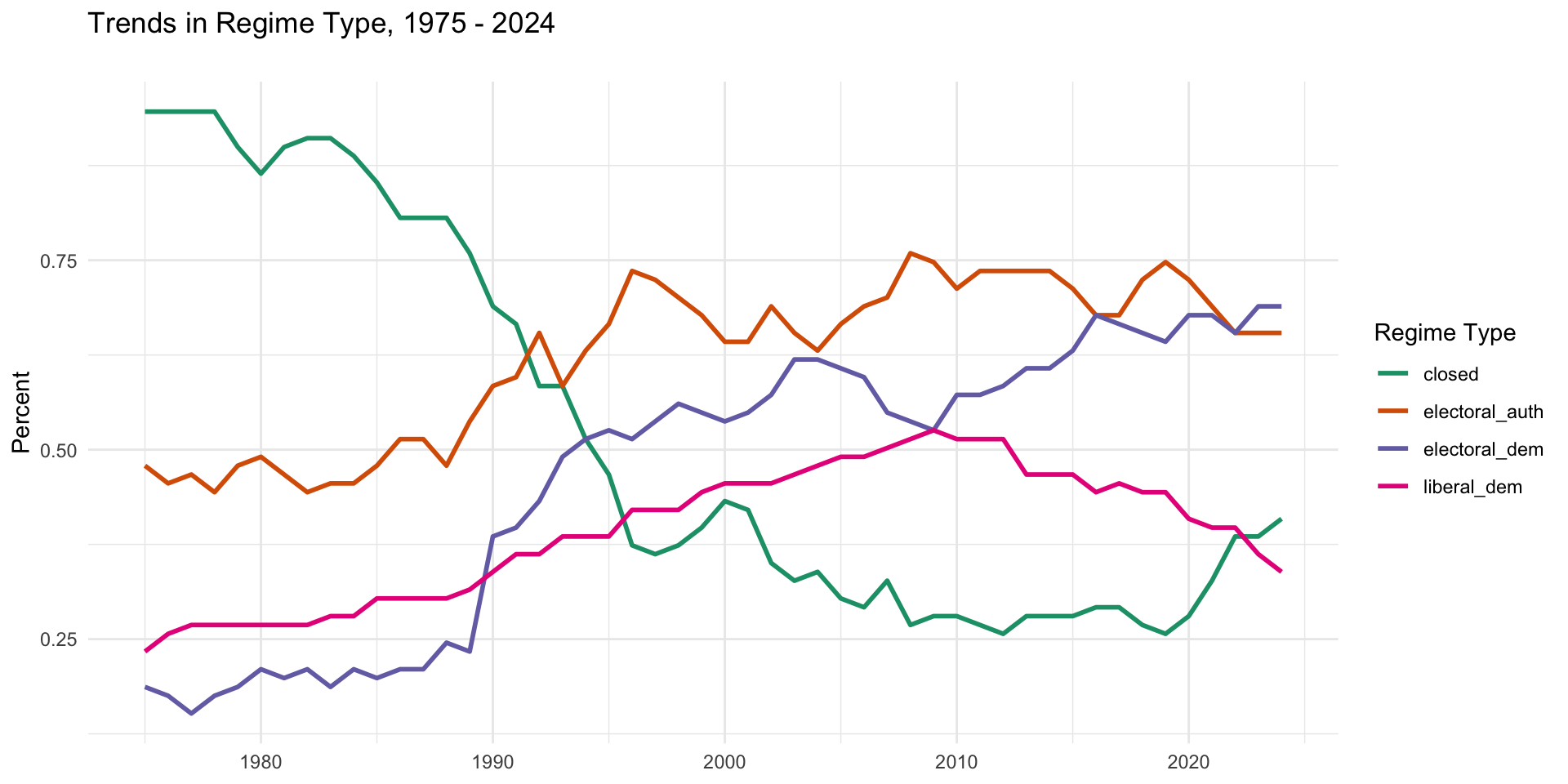 | Note: Regime types are based on passing separate thresholds for elections and liberal rights (not the LDI score). | |||||